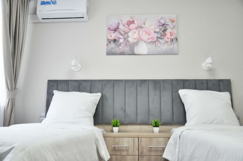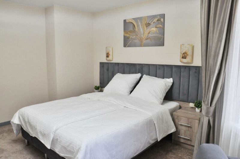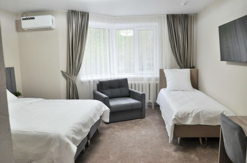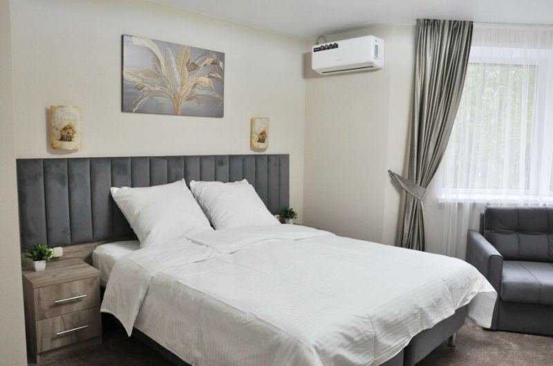 В номерах имеется рабочая зона, Wi-Fi, гости могут комфортно проводить рабочие будни. Все номера оснащены кондиционером, холодильником, Smart ТВ. Предоставляется постельное белье высокого качества, комплект полотенец. Ванные комнаты оснащены гигиеническими принадлежностями.